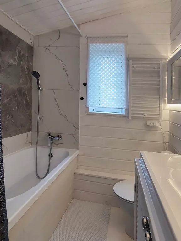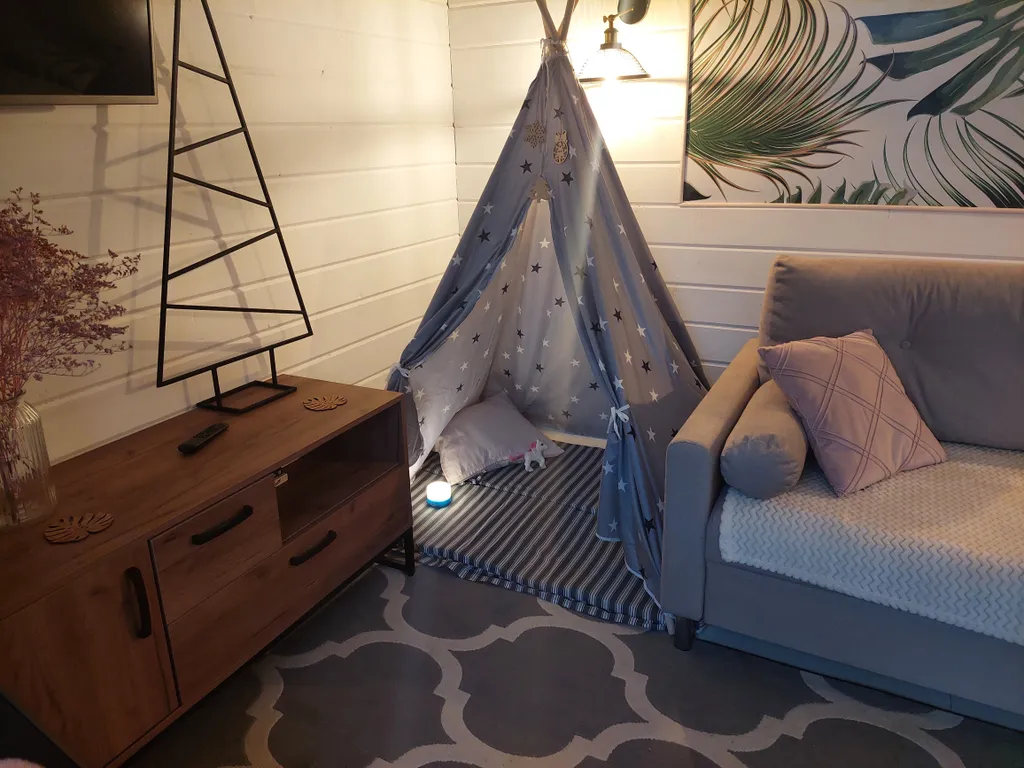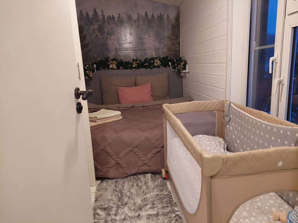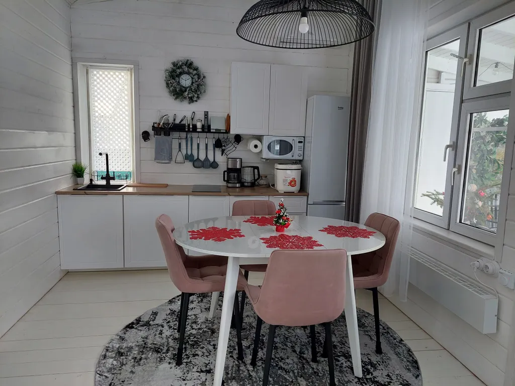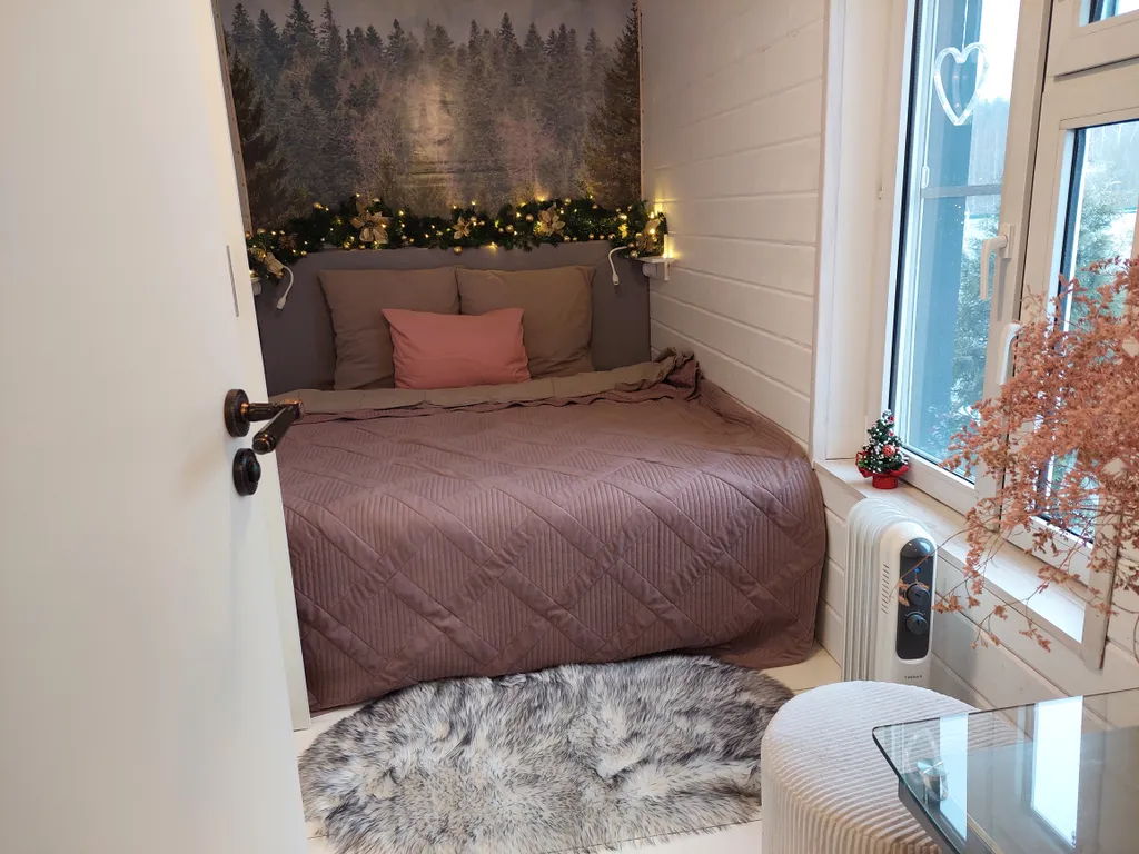 Дом с хорошей звукоизоляцией. В отдельной спальне кровать 180*200 с новым матрасом «Аскона», вместительный большой шкаф и компьютерный столик для удаленной работы. Удобный раскладной диван в кухне-гостиной. При необходимости предоставляется детская кроватка со спальными принадлежностями. Печь-камин в зимнее время добавит уюта.