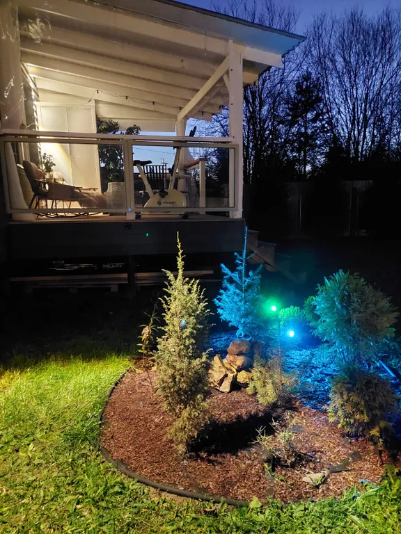 Участок ухоженный, с ночным освещением дорожек, террасы и фасада дома. Дом с участком на возвышенности, с одной стороны спуск к оврагу, где зимой можно покататься на ватрушках, с противоположной стороны луг, где зимой лыжная трасса, а за ним смешанный лес, лес грибной.