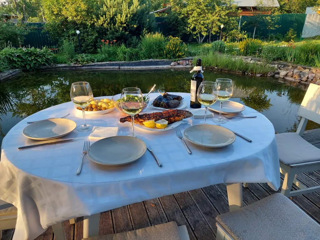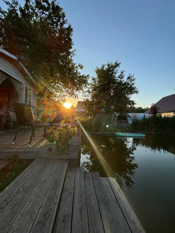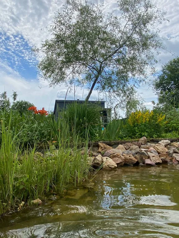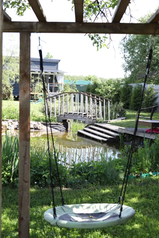 С участком граничит пруд с беседкой, пригодный для купания, в беседке можно поиграть в настольные игры детям и взрослым, просто попить кофе/чай, Wi-Fi, детская площадка.