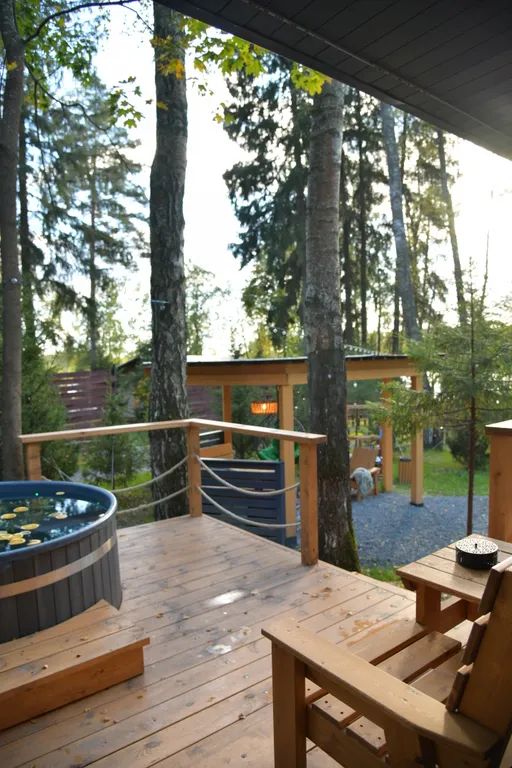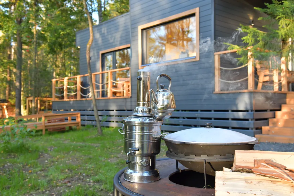 Описание: гостевой дом премиум-класса для 4–6 гостей, расположенный в живописном месте с панорамным видом на лес и реку. Это идеальное предложение для тех, кто ищет полное погружение в природу с комфортом.