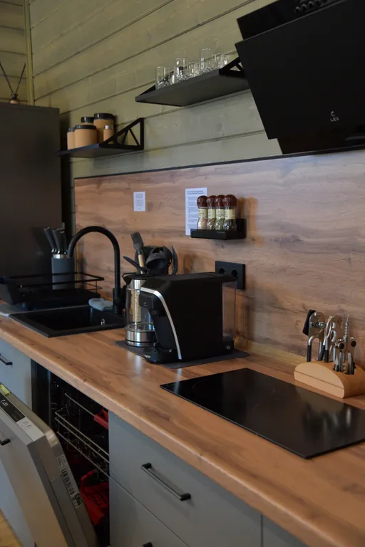 - кухня со всей необходимой посудой, чаем и кофемашиной;