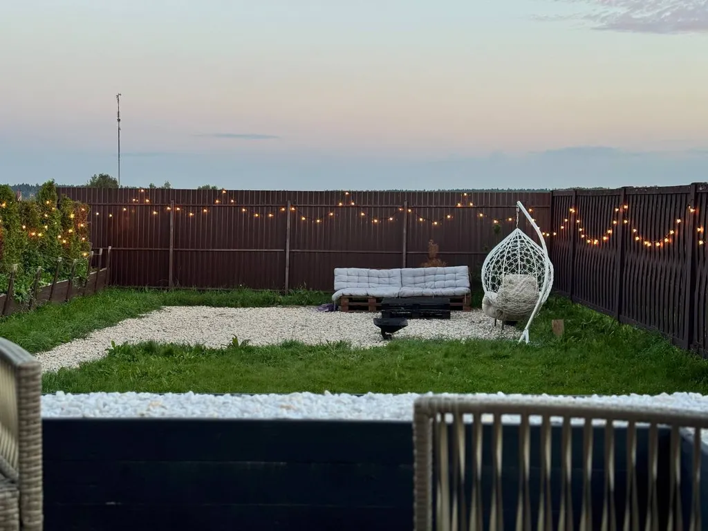 уютная терраса с мебелью и подсветкой