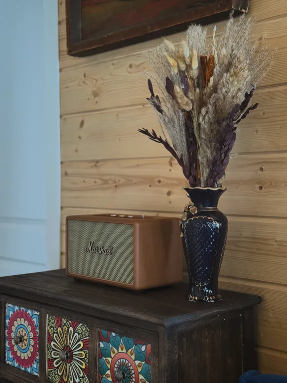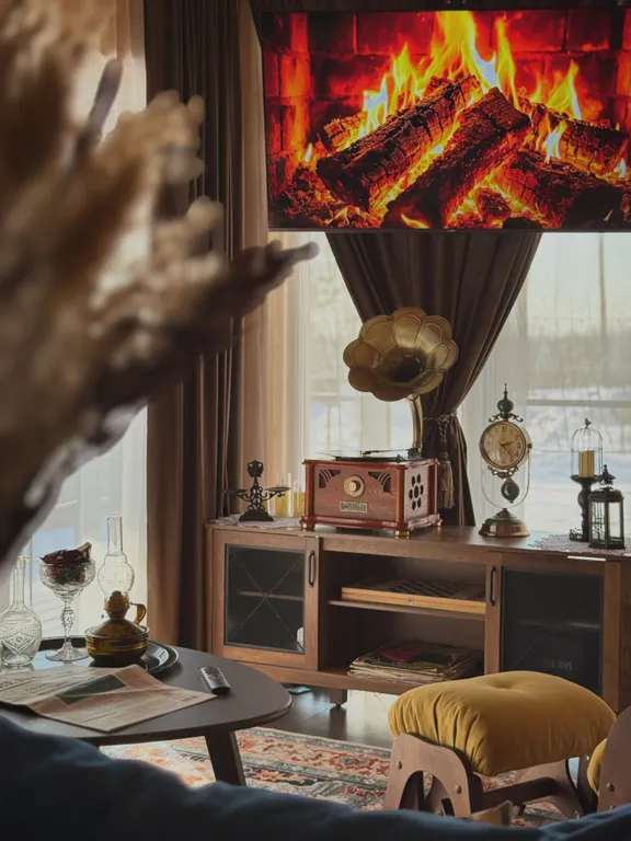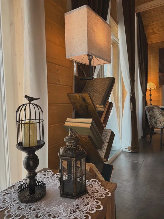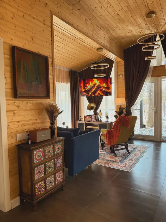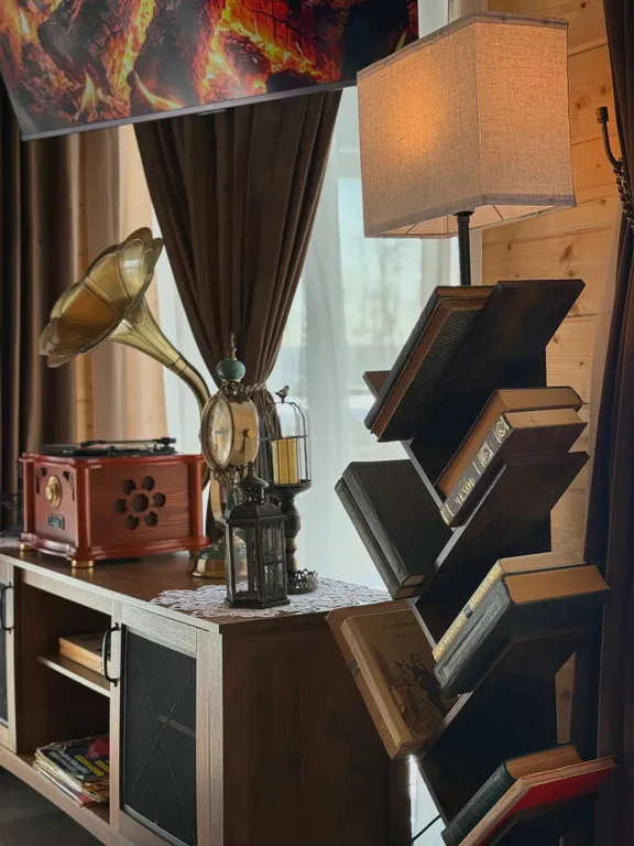 Этот дом — не просто отдых на природе, а настоящее путешествие в атмосферу уюта и винтажного очарования. Здесь можно замедлиться, включить граммофон и наслаждаться мягким звучанием музыки, устроившись в кресле-качалке с любимой книгой.