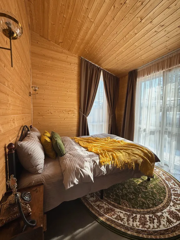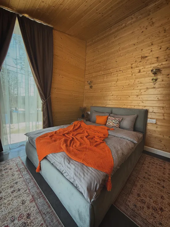 Внутри вас ждет продуманный до мелочей комфорт: самая уютная кровать с воздушным одеялом, плотные шторы blackout для идеального сна и атмосфера, в которую хочется возвращаться снова и снова.