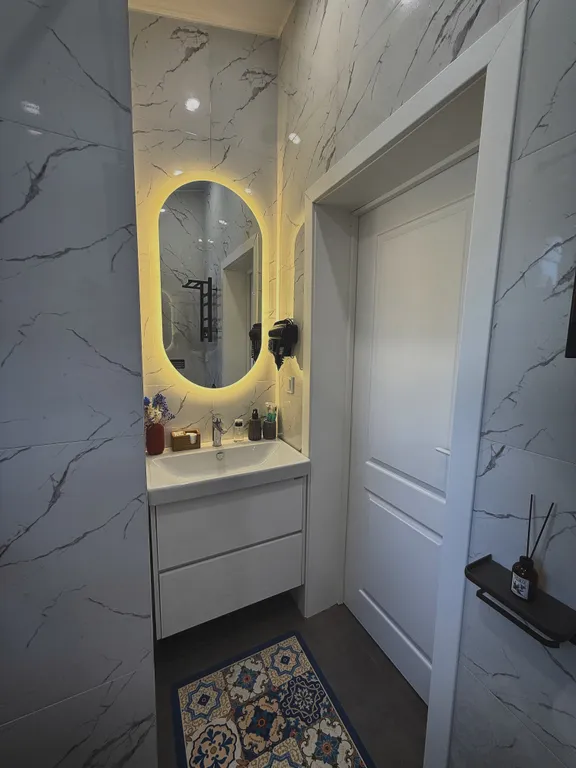-Белоснежный санузел с душевой кабиной